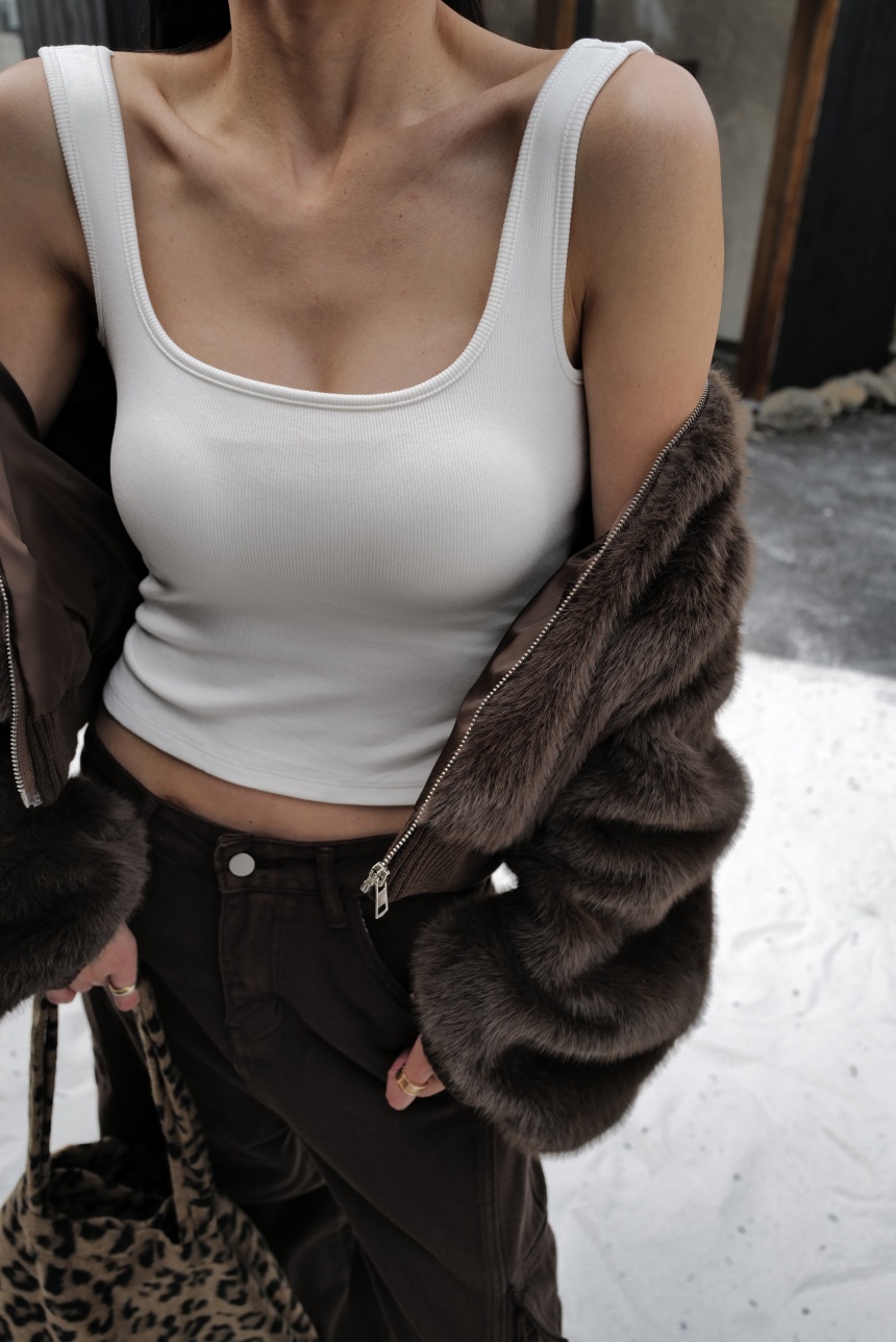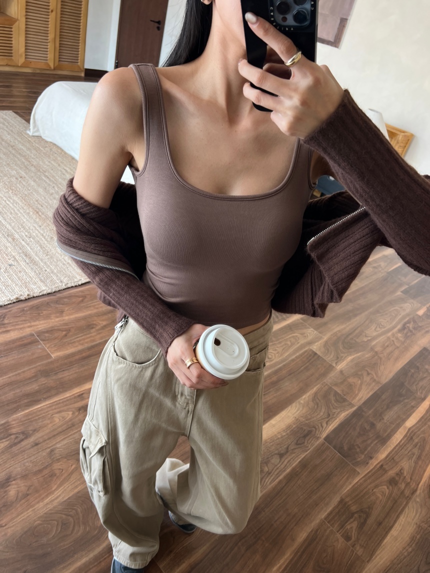 應該說是四季必備的磨毛方領背心