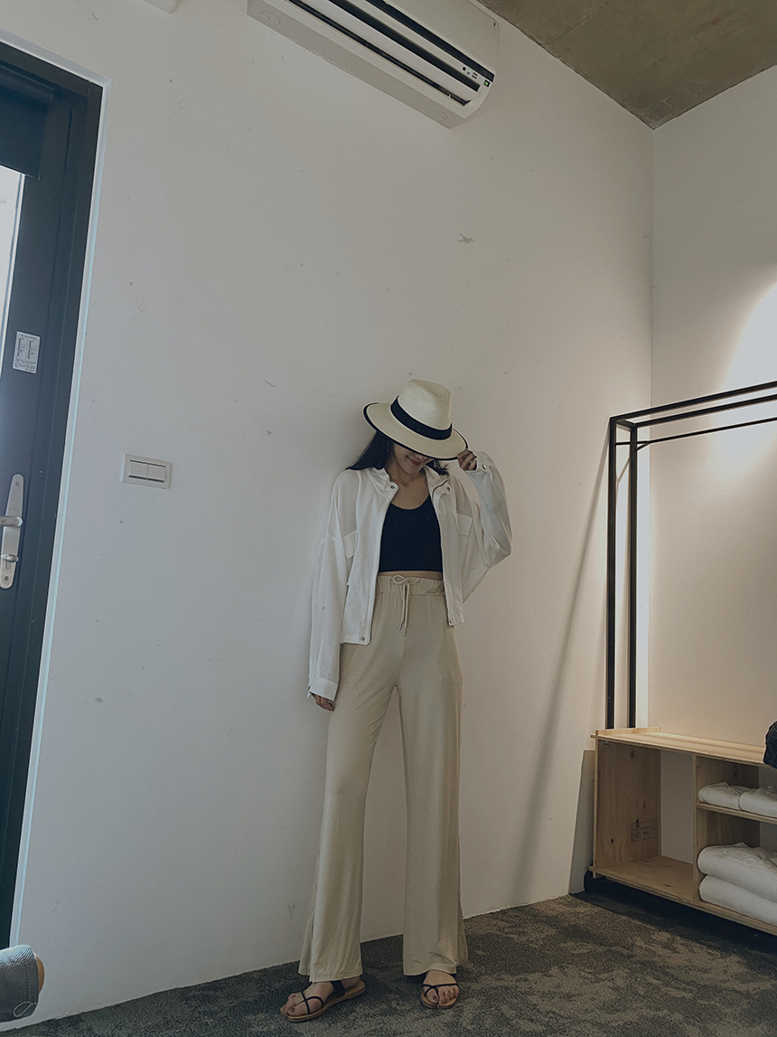 材質柔棉的喇叭褲